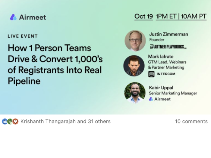 Through our "Partner Pod" program, we manage a calendar of co-marketing activities across and with your best partners—including webinar and virtual summits. So instead of "1-off" campaigns and events, you get recurring ICP-matched partner-sourced leads throughout the year.