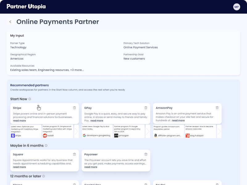 Our groundbreaking platform automates and streamlines the strategy phase of the partnership lifecycle. Picture having a dedicated team of partnership pros managing the heavy lifting while you focus on strategic thinking and creativity. With Partner Utopia, you’ll choose the best partners, accelerate partnership creation, and maximize your growth. Master your partner strategy like never before!