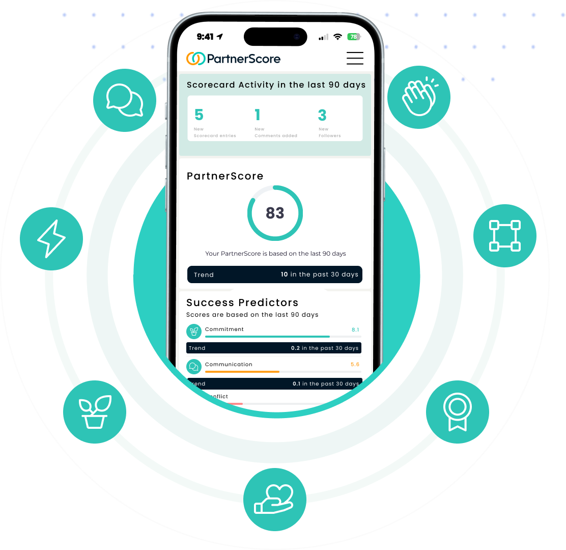 With PartnerScore's 7 key success predictors, you'll be aware of any potential issues in your partnerships before they impact revenue